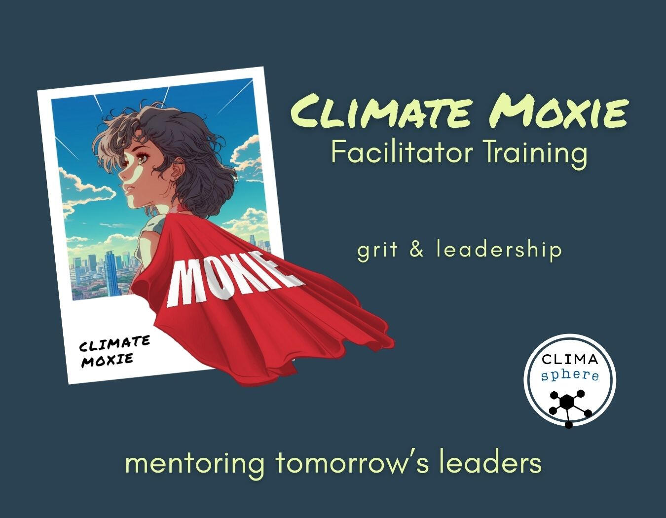 -- guidance and feedbackThis program is provided to the community at a value rate starting at $25, depending on your budget.Ready to become a Climate Moxie Facilitator? See our LUMA event & training calendar to check upcoming dates. To be notified of future training dates, look for the NOTIFY link on middle-right of the calendar page, or contact. Register, fill out the application form.Training fees are the cost of this service.